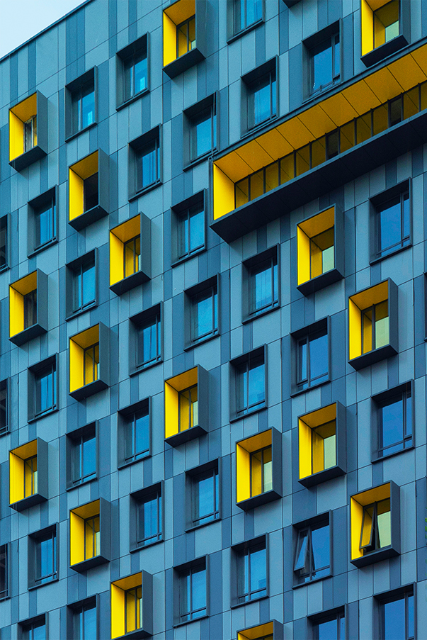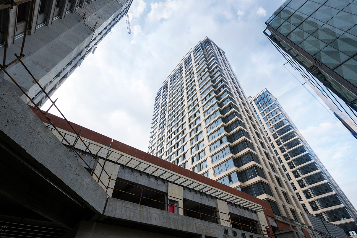 辦公區(qū)沿基地西側布置,靠近基地西側的大型景觀公園,使整個建筑群最大程度的享受到城市中央景觀,辦公區(qū)相對獨立,同時底層架空綠化與商業(yè)街區(qū)流線分開,提升了辦公的品質。