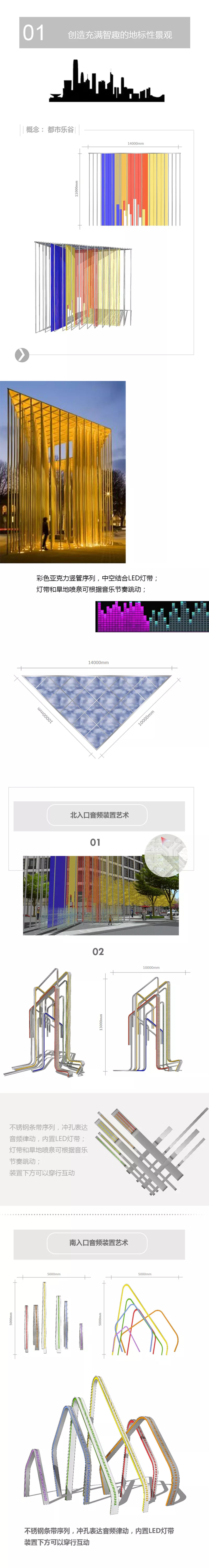 而項目面向都市潮智新人的定位又激起了設(shè)計師對于“都市樂谷”概念的思考。于是景觀設(shè)計以“創(chuàng)新智趣”與“都市樂谷”為概念雙向展開,將集成電路的科技韻律之美融入到音頻波動的樂章節(jié)奏之美中,形成項目獨特的精神氣質(zhì)。