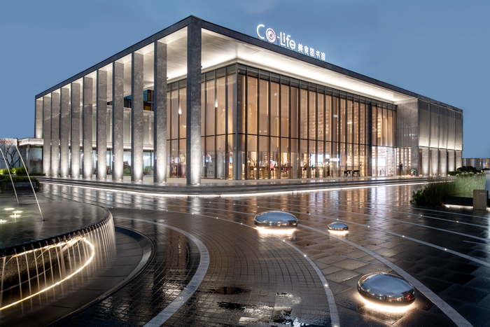 在Co-Life美食圖書館的主題下,用適度的表達(dá)讓建筑、景觀、室內(nèi)相互疊加,融合成為渾然一體的多重場(chǎng)景呈現(xiàn)。