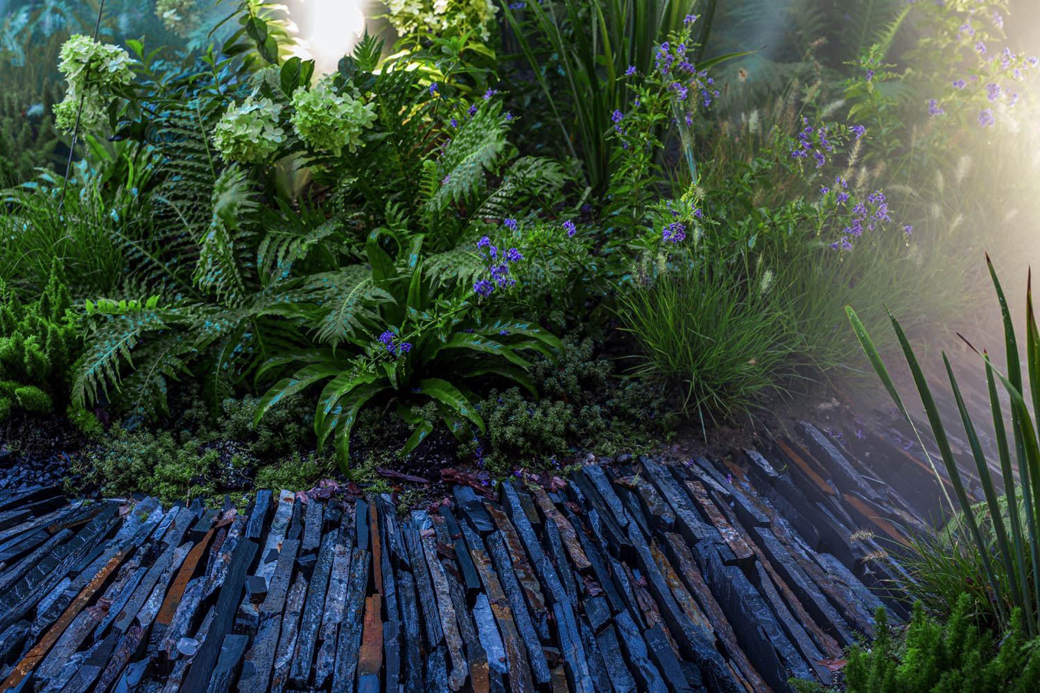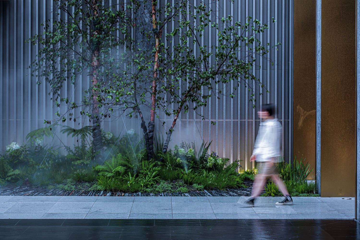 在內(nèi)庭無界秘境的主場(chǎng)景之外,我們還安排了兩處小確幸般的存在:一處是在水庭拐角一隅獨(dú)自美麗的以三兩株拼配河樺為主景的綠葉花境綠植區(qū);