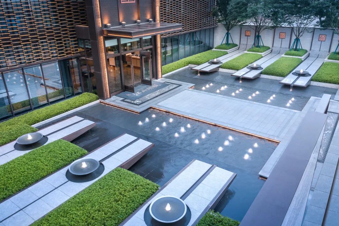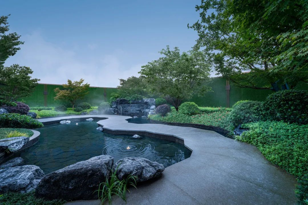 穿越第一進(jìn)空間,書(shū)卷水景與涌泉形成了畫(huà)卷般的美景。