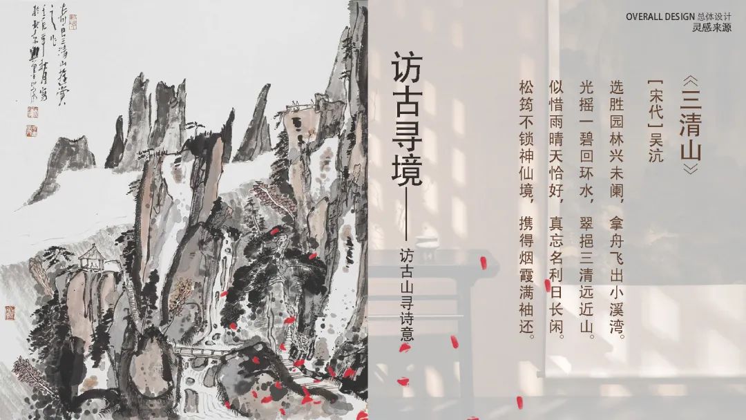 展示區(qū)借上饒八景提煉八重景觀體驗(yàn),以上饒的八大景觀,月亮灣,玉清臺(tái),龍?zhí)逗?,臥龍谷,陽(yáng)春古戲臺(tái),鵝湖書(shū)院,汪口古村,三清宮為背景,將上饒文化融進(jìn)設(shè)計(jì)中,打造屬于上饒?zhí)厣木坝^。