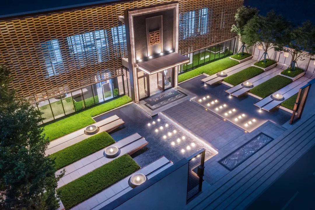 穿過(guò)售樓處建筑,豁然開(kāi)朗,整個(gè)后場(chǎng)營(yíng)造了一個(gè)極為簡(jiǎn)潔純粹的空間,隨著晨昏的時(shí)間變化,交織的光影在景亭和水面上作畫(huà),只為營(yíng)造純粹的東方美學(xué)意境,整個(gè)庭院猶如一幅持續(xù)變化著的山水畫(huà)卷。