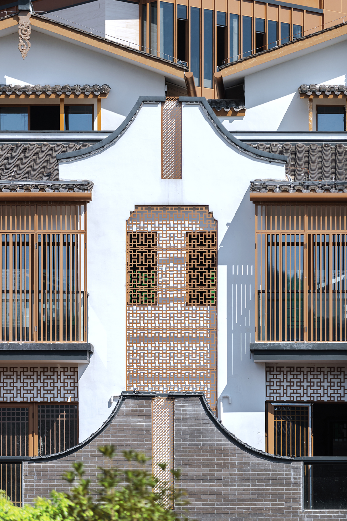 山地院墅定義休閑山居典范,強(qiáng)調(diào)組團(tuán)圍合感,形成宅中有園,園中有屋,屋中有院,院中有樹,粉墻黛瓦木色,重塑仿宋民居風(fēng)貌。