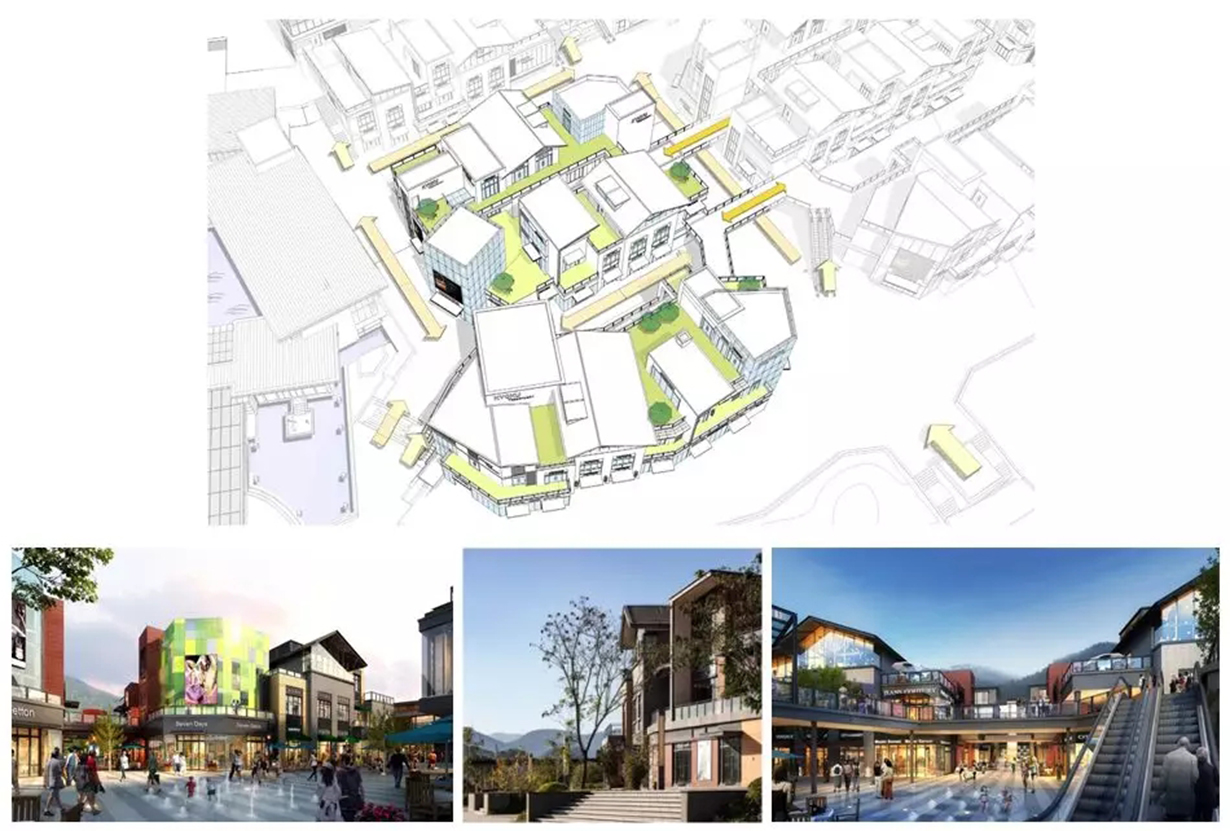 本項(xiàng)目的商業(yè)區(qū)是山地商業(yè)街,由6萬平方米的奧特萊斯區(qū)及1萬平方米的可售商業(yè)組成,商業(yè)均采用商墅的形式設(shè)計,獨(dú)立店鋪面積均控制在 150 平方米以內(nèi),強(qiáng)調(diào)豎向分割,可根據(jù)實(shí)際銷售的需要自由切割,增加了其靈動性和可售性。