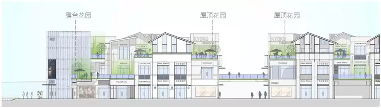 同時設(shè)計師利用地形,自然形成不同尺度的露臺以及屋頂綠化,形成錯落的屋頂天際線,豐富整體商業(yè)街的旅游度假氛圍,力求打造武夷山特有的體驗(yàn)式情景商業(yè)街。