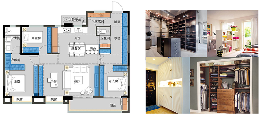 注重細(xì)節(jié)的設(shè)計,比如臥室門垛,增加至0.5米,就可以增加一面墻的完整收納柜。
