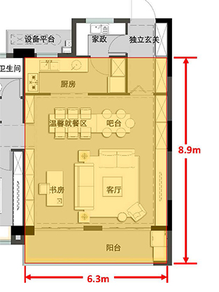 年輕的業(yè)主需要的不僅僅是一個居住場所,更是一個讓心靈沒有束縛、讓自由不受限制、讓空間沒有間隔感的社交場所,在這里能夠與圈層內(nèi)的朋友聚會、暢玩;需要的是空間得開敞、流暢、有趣、好玩。